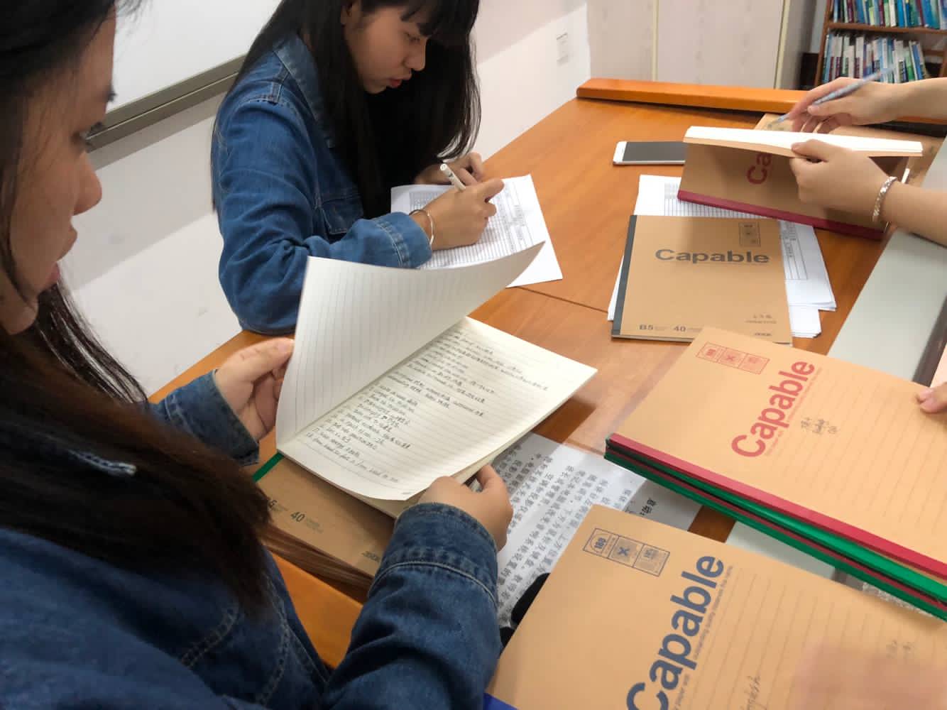 工作人员认真检查 在检查过程中,干部发现同学们的笔记质量较之初检有了大幅提升。一份好的课堂笔记能提高学习效率,改善听课质量。优质课堂笔记数量明显增多,许多同学逐渐开始正视比赛,用心准备。