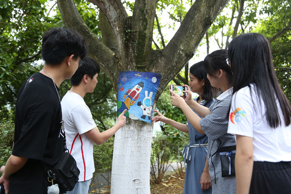 詹择榕介绍,为了让创作达到最佳的效果,团队成员因地制宜,根据每棵树木的特性、形状及所处的位置等,进行量身设计绘画内容,以期达到最大的宣传和美化效果。同时,绘画材料采用了丙烯颜料,避免伤害树木。