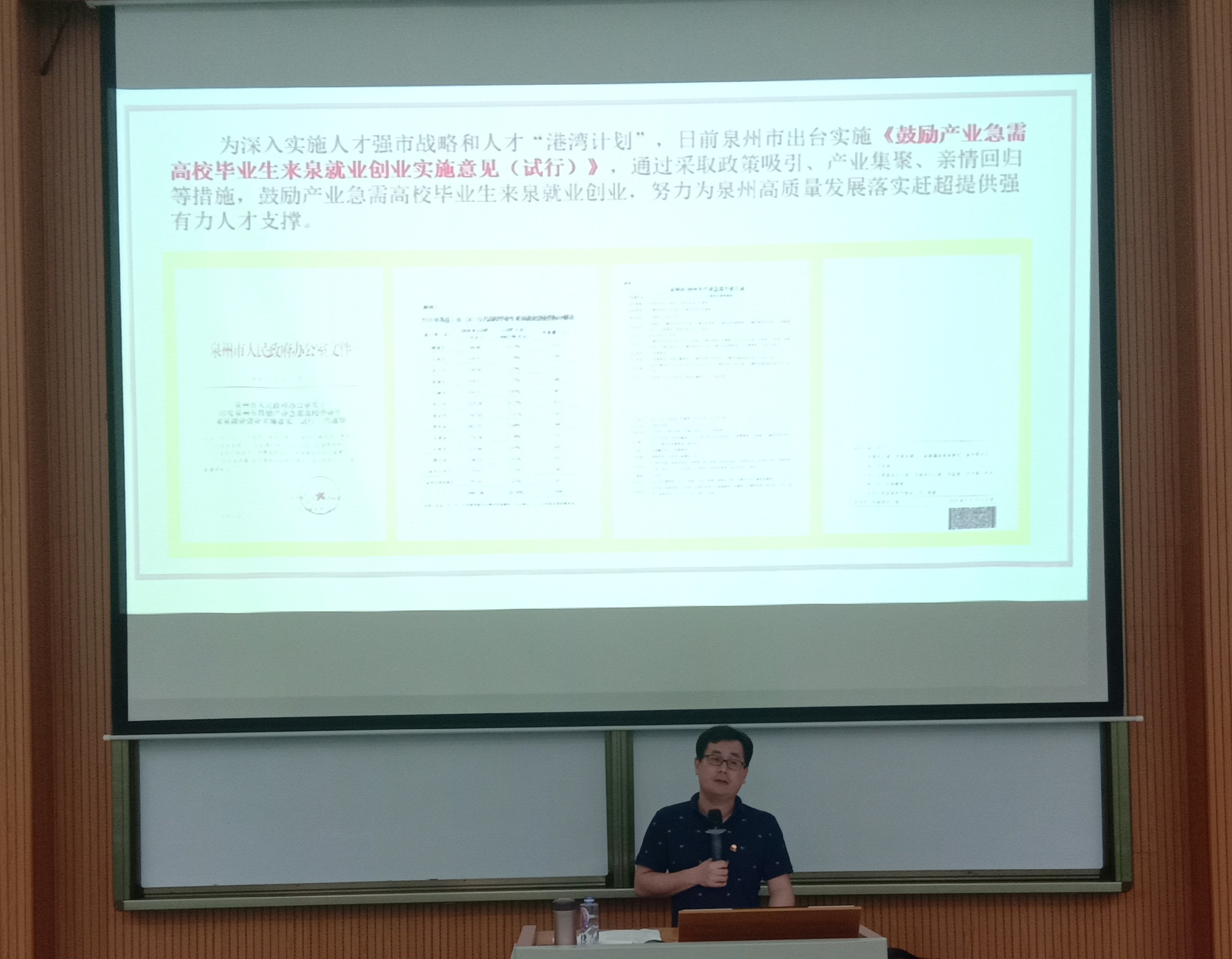 6月17日下午,新葡官网团委在第一教学区和昌教学楼乐之讲堂举办青年讲师团宣讲活动,校青年讲师团成员、发展规划处处长李瑞松应邀为学院师生作《青春建功新时代,筑梦泉州新作为》主题宣讲报告。