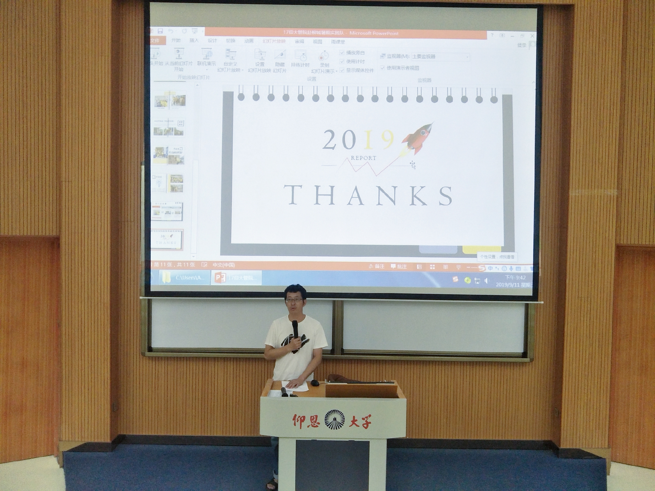 报告会现场 本次汇报共有10支专业实践队和10支社会实践队。每支实践队都进行了精彩的汇报,一张张生动鲜活的实践照片,展现出新葡官网青年学子的责任担当;一句句厚重质朴的实践感言,反映了新葡官网青年学子的成长蜕变。期间,由于电脑设备出现问题,在主持人的带领下在场师生齐唱《我和我的祖国》,献礼新中国成立70周年,把现场的气氛推向高潮。