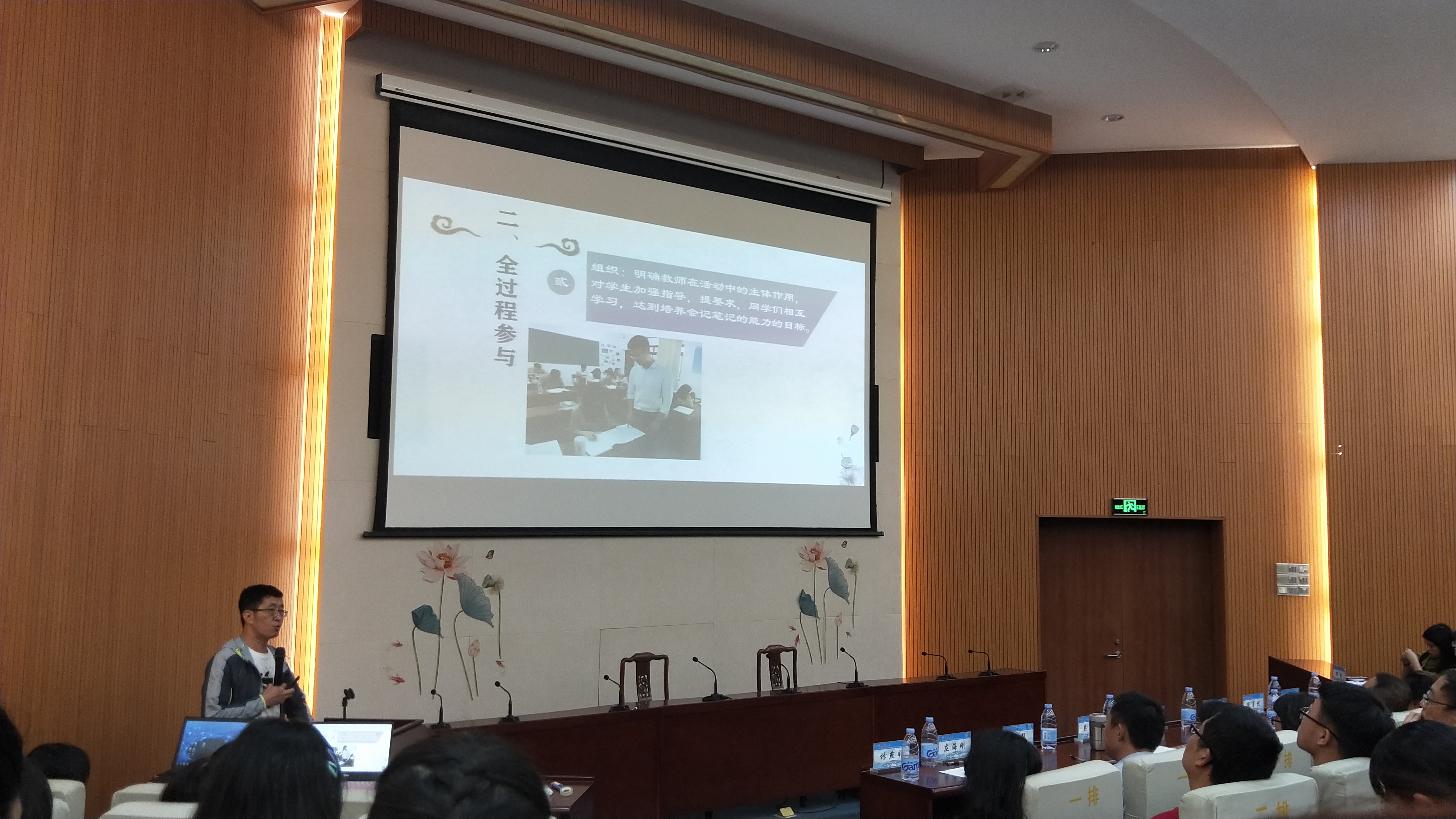 许惠铭分享赛事组织经验 经过班级初赛、学院复赛,新葡官网共有7本笔记顺利闯入学校决赛。据悉,全校从各院系总共遴选了34本笔记参加决赛。评委们根据笔记的布局整洁性、逻辑条理性、内容总结性、笔记方法及实用性四个方面对入围决赛的笔记进行评分。在决赛现场,参赛选手们轮番上场,以PPT展示他们优秀而精美的笔记,分享了做课堂笔记的技巧、课程内容的学习收获和针对该门课程的建议。一篇篇工整的课程章节笔记,一个个彩色记号凸显的重点、一幅幅清晰的思维导图,展现了同学们扎实的学习作风和奋笔疾书的学习劲头。