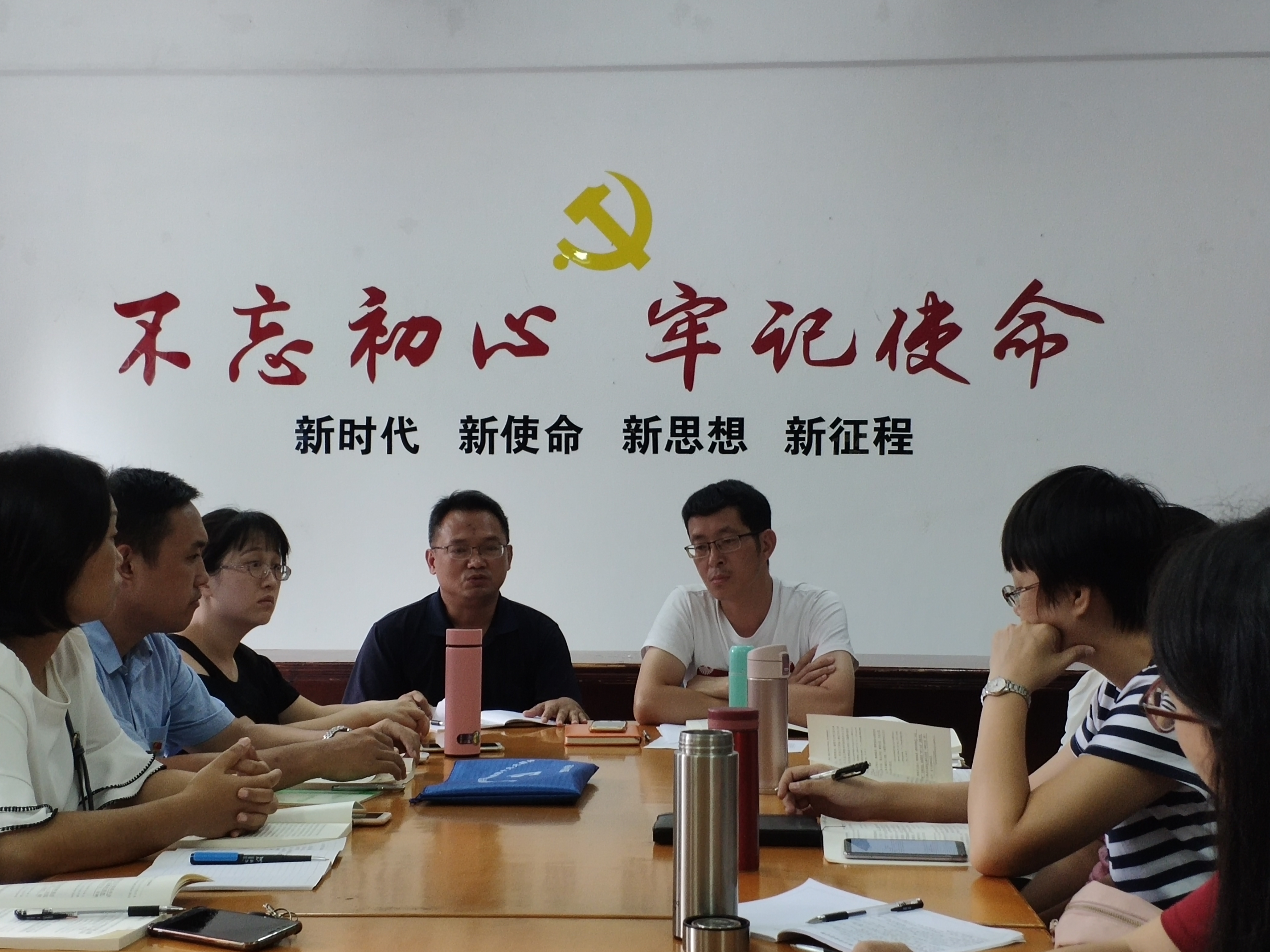 与会教师党员在前期自学《习近平关于“不忘初心、牢记使命”论述摘编》的基础上,紧扣“不忘初心,用实际行动践行入党誓言”这一主题,聚焦学习贯彻习近平总书记关于“不忘初心、牢记使命”的重要论述进行研讨。