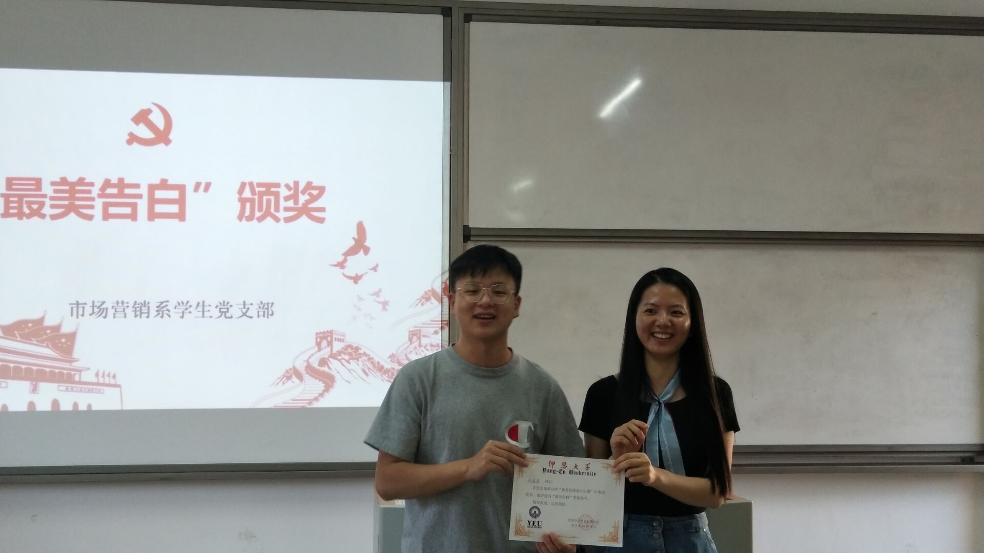 10月18日下午,市场营销系学生党支部在旧区吉龙楼304召开“我爱祖国表白大赛”总结大会。参加本次大会的有连景霞老师以及市场营销系学生党支部全体党员。会议由洪如莹同志主持。