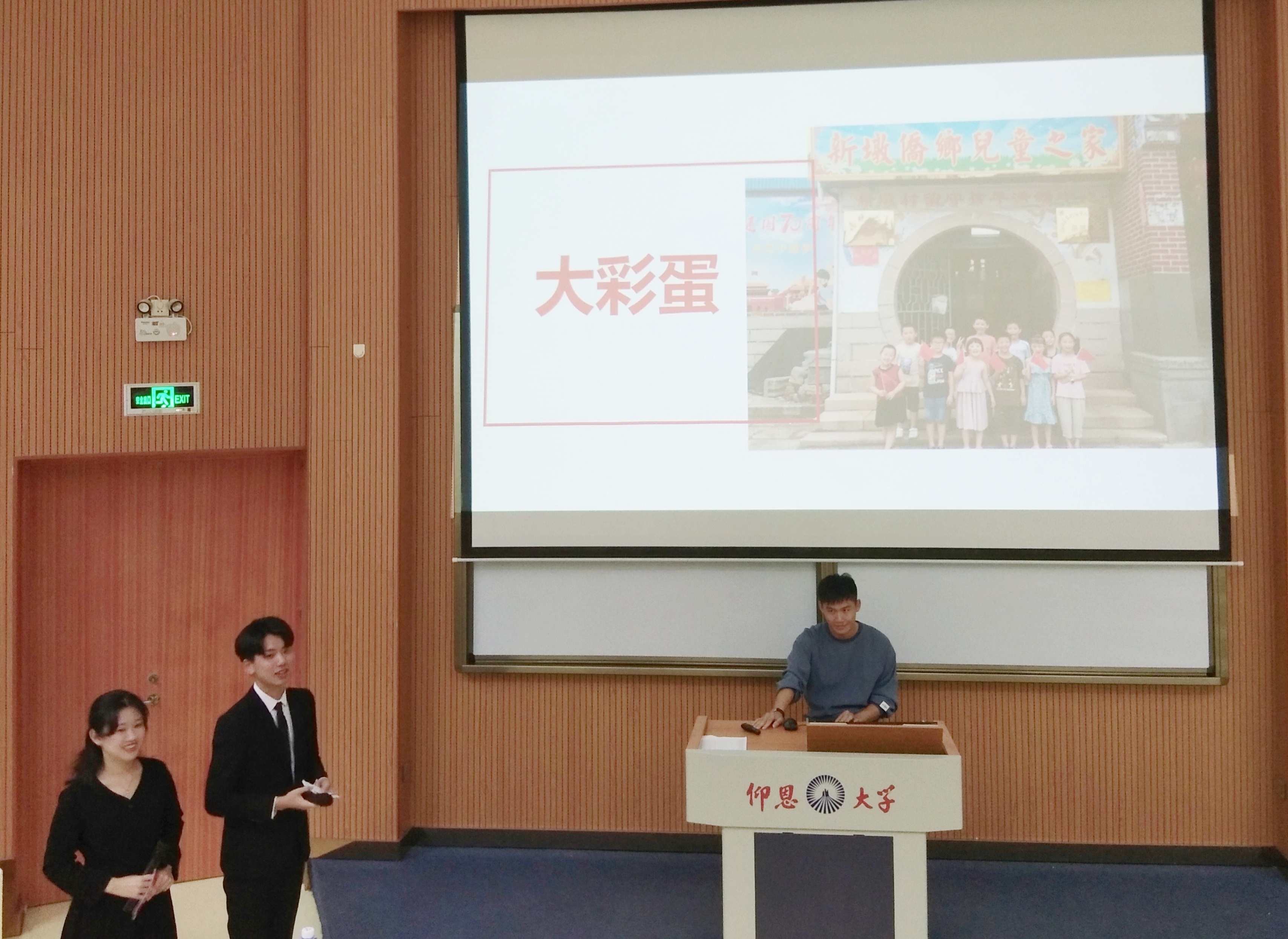表彰大会现场 “裕动清流”赴福建省三明清流县暑期实践队、“青春助力,远航百香”赴龙岩武平县暑期实践队、“传承红色基因,绽放青春光彩”赴莆田新墩暑期实践队、“红星永向党·青春献诏安”赴漳州市诏安县暑期实践队等4支校级优秀团队学生代表通过PPT、短视频、实物展示等方式,为全体大一新生作经验分享,畅谈实践中的见闻与心得、成果与收获。