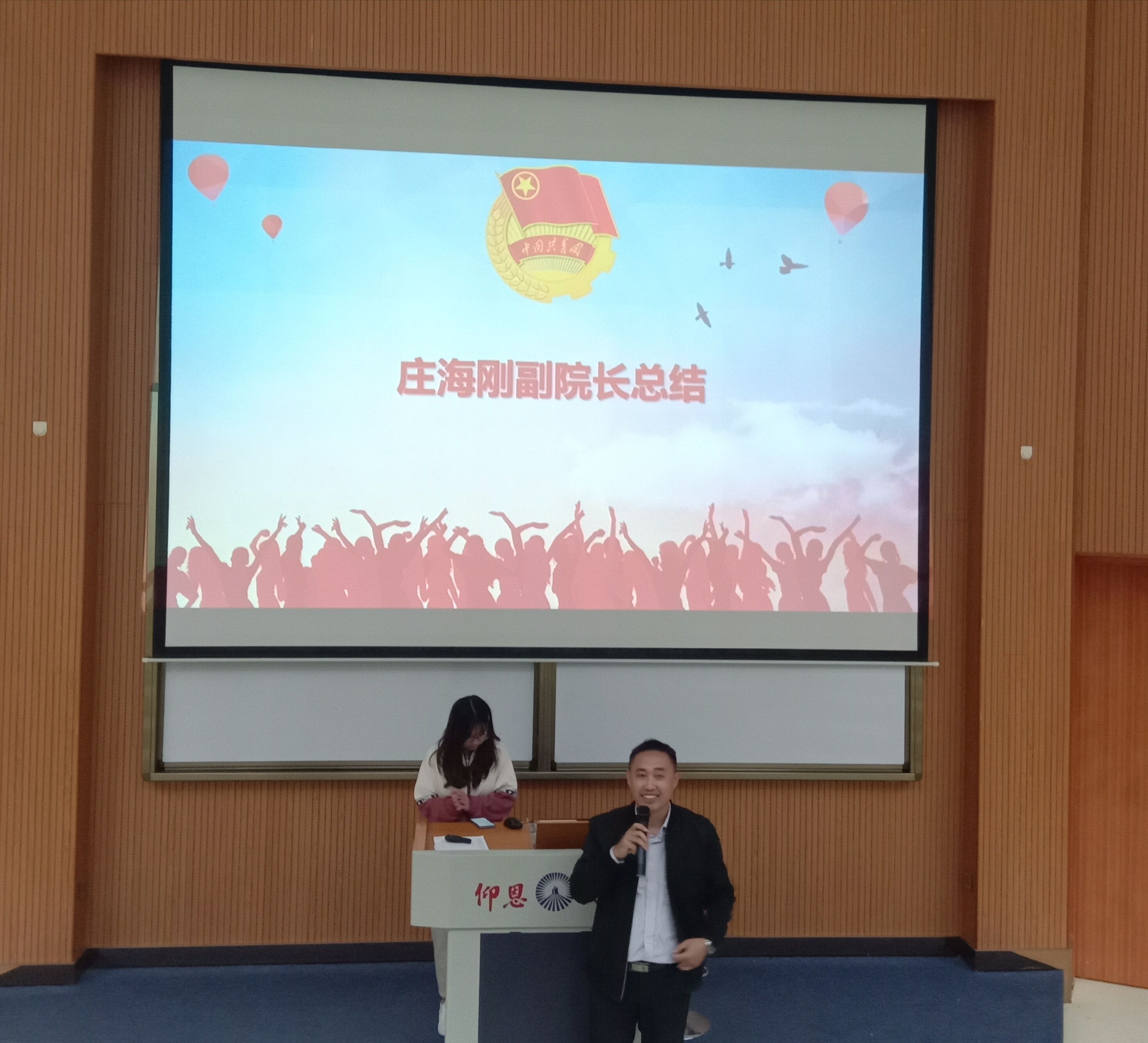 庄海刚总结讲话 期间,3003新葡官方网站院长翁景德、副院长庄海刚分别为表彰大会致辞与作总结。召开此次表彰总结大会,旨在鼓励先进,激励后进,树立先进典型,宣传先进事迹,激发2019级大一新生奋发向上的积极性,向优秀榜样看齐,青春建功新时代。(杜心田、赖红梅/文 赖红梅、张雪文/图)
