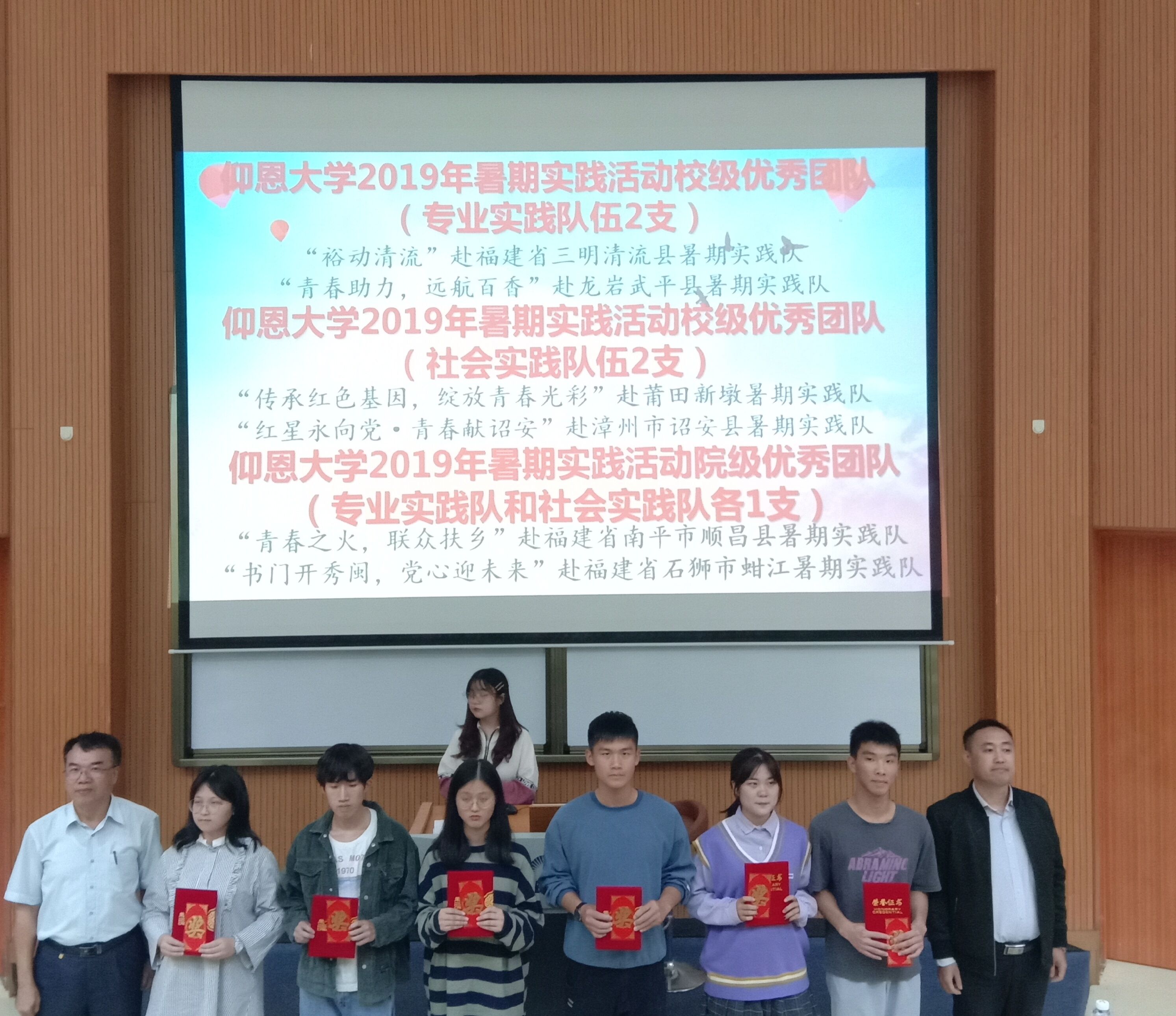 为院级先进个人颁奖 会上,杜结实老师从保障措施有力、领导高度重视、实践成果丰硕和媒体广泛宣传等四个方面总结回顾了新葡官网2019年暑期实践活动,详细介绍了专业实践、爱心支教、基层调研、志愿服务、“青春助力乡村振兴”专项行动、“红色文化”专项学习调研等六大特色实践活动。他希望各系团总支进一步提高暑期实践活动的质量,打造精品实践项目,将暑期实践活动成果不断转化为创新创业教育的延伸成果。