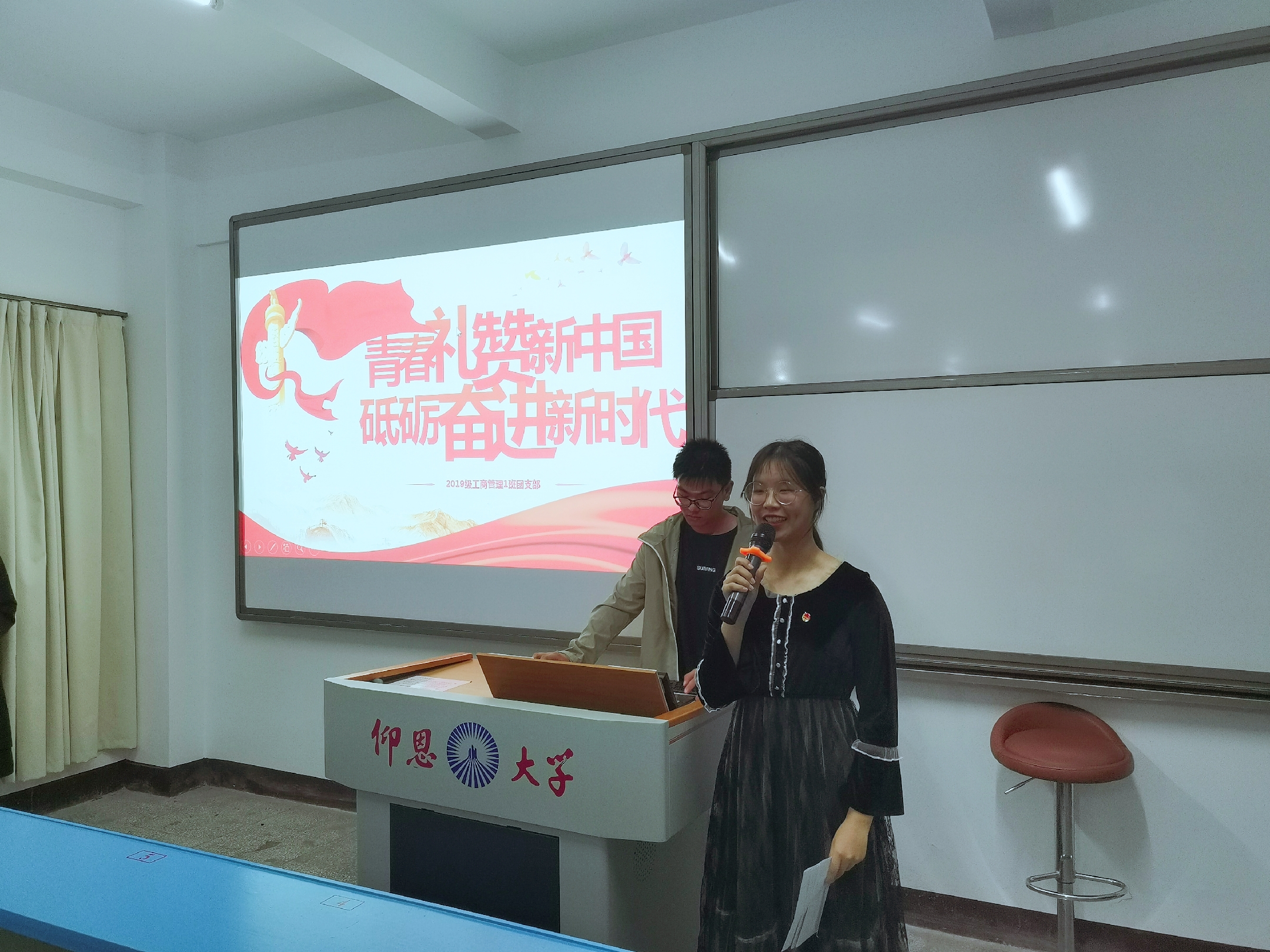 各班团支部展示中 学院复赛共有十个优秀团日活动入围,各班团支部围绕庆祝新中国成立70周年这条主线开展班级团日活动,通过PPT汇报活动收获及成果。复赛现场, 2019级工商管理1班团支部向大家展示了由同学们亲手制作的一幅精美的祖国关键时刻的历史画卷,用青春色彩礼赞新中国;2019级工业工程1班团支部展示了从六十年代到现今的创意动画视频,突出时代的发展,砥砺奋进新时代。比赛中,各班团支部精彩的演讲和汇报赢得现场阵阵热烈的掌声。