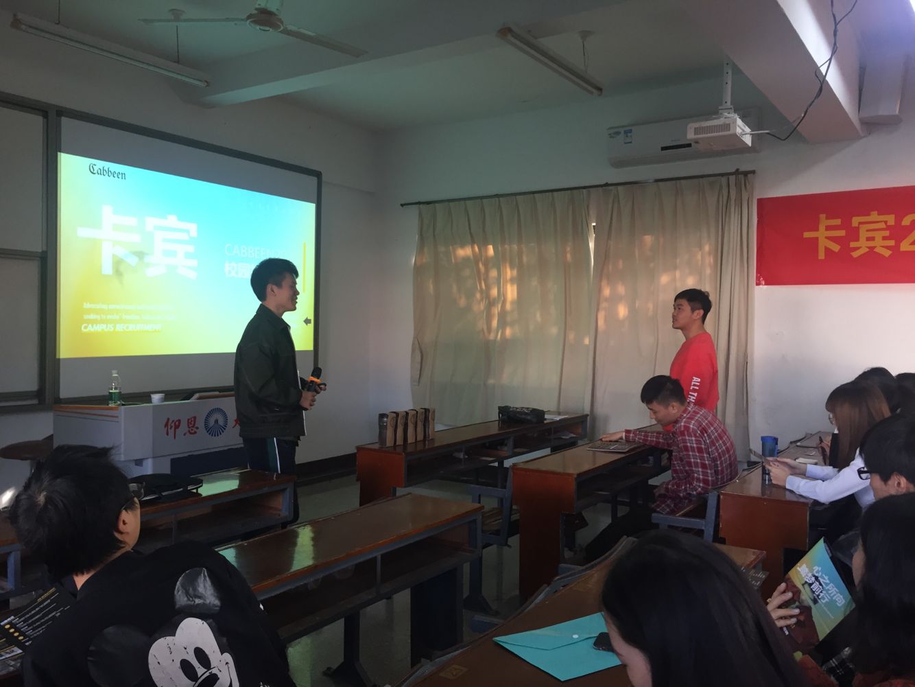 为搭建应届毕业生与用人单位面对面沟通交流的平台,11月27日下午,新葡官网于第一教学区共和楼204举办卡宾服饰校园招聘宣讲会。
