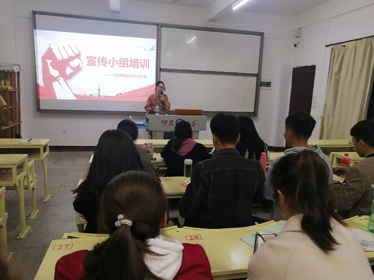 12月5日晚,市场营销系学生党支部在吉龙楼304开展宣传小组培训,参加培训的有支部全体党员,培训由吴益敏和林锦怡同志担任主讲。