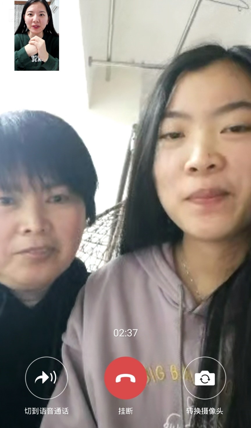 陈慧敏:非常感谢学校与连导的关心,此次视频家访连导亲切询问了我和家人的身体情况以及跟我们讲述了如何做好防疫措施。我母亲表示对学校的做法高度赞同,我也会听取连导的教诲,踏踏实实待在家中安心学习,认认真真做好防疫工作,不给国家添麻烦,做一个有责任心的好公民。