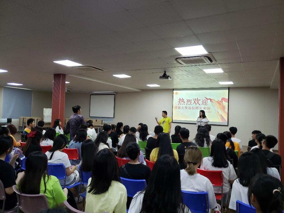 现场互动 本次活动共分为三个环节。首先,由公司人力资源部主管对企业发展、产品服务、企业定位、社会责任等方面进行介绍,让同学们对企业有了初步的了解。接下来在生产部门主管的带领下,学生参观了公司的生产车间。在参观过程中,生产部门相关负责人对产品的生产流程进行详细介绍,让同学们对鞋业的生产、加工及技术应用有了更深入的了解。在互动提问环节,同学们表现活跃,针对技术研发、生产工艺、产品销售等问题踊跃提问,得到了公司主管的专业解答。