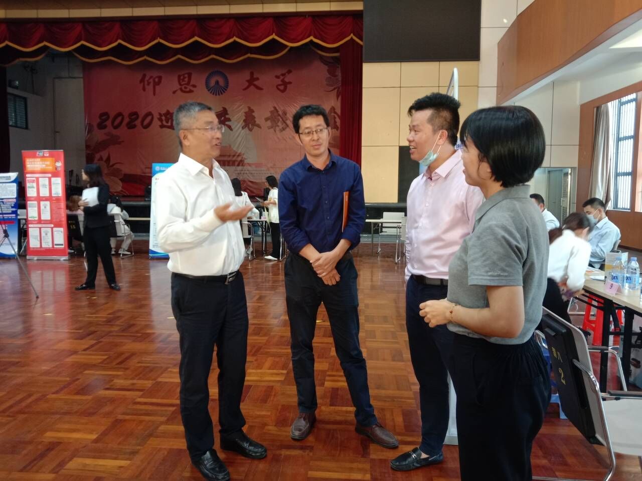11月18日下午,3003新葡官方网站校友企业专场招聘会在3003新葡官方网站第一教学区普照大礼堂成功举办,本次招聘会由3003新葡官方网站承办。校长康龙、3003新葡官方网站党总支书记兼常务副院长许惠铭、就业办主任朱玉华深入校友企业招聘会现场指导工作,并与企业负责人及校友HR进行现场交流。