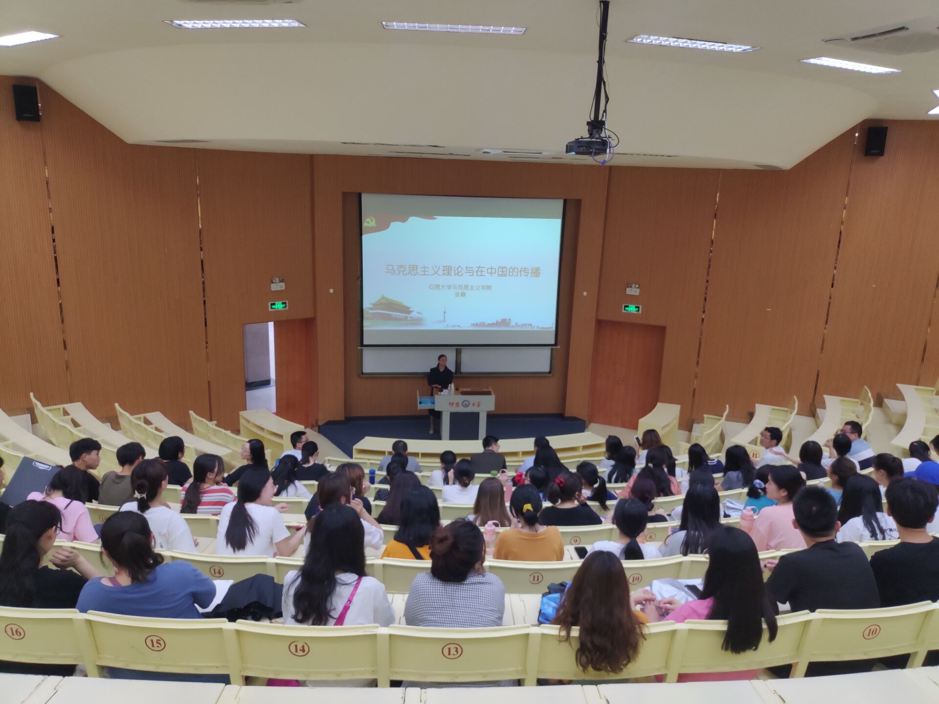 报告会现场 “我们党的历史,就是一部不断推进的马克思主义中国化的历史,就是一部不断推进理论创新、进行理论创造的历史。”张静通过“马克思主义的诞生”“马克思主义理论简介”“马克思主义在中国的传播”“与时俱进的马克思主义”四个方面为大家讲述了马克思主义自诞生到成为影响世界重要理论的过程。她强调,离开中国特点来谈马克思主义,只是抽象空洞的马克思主义,必须坚持马克思主义基本原理与中国具体实际相结合,才能做到无往而不胜,使我党不断前行。