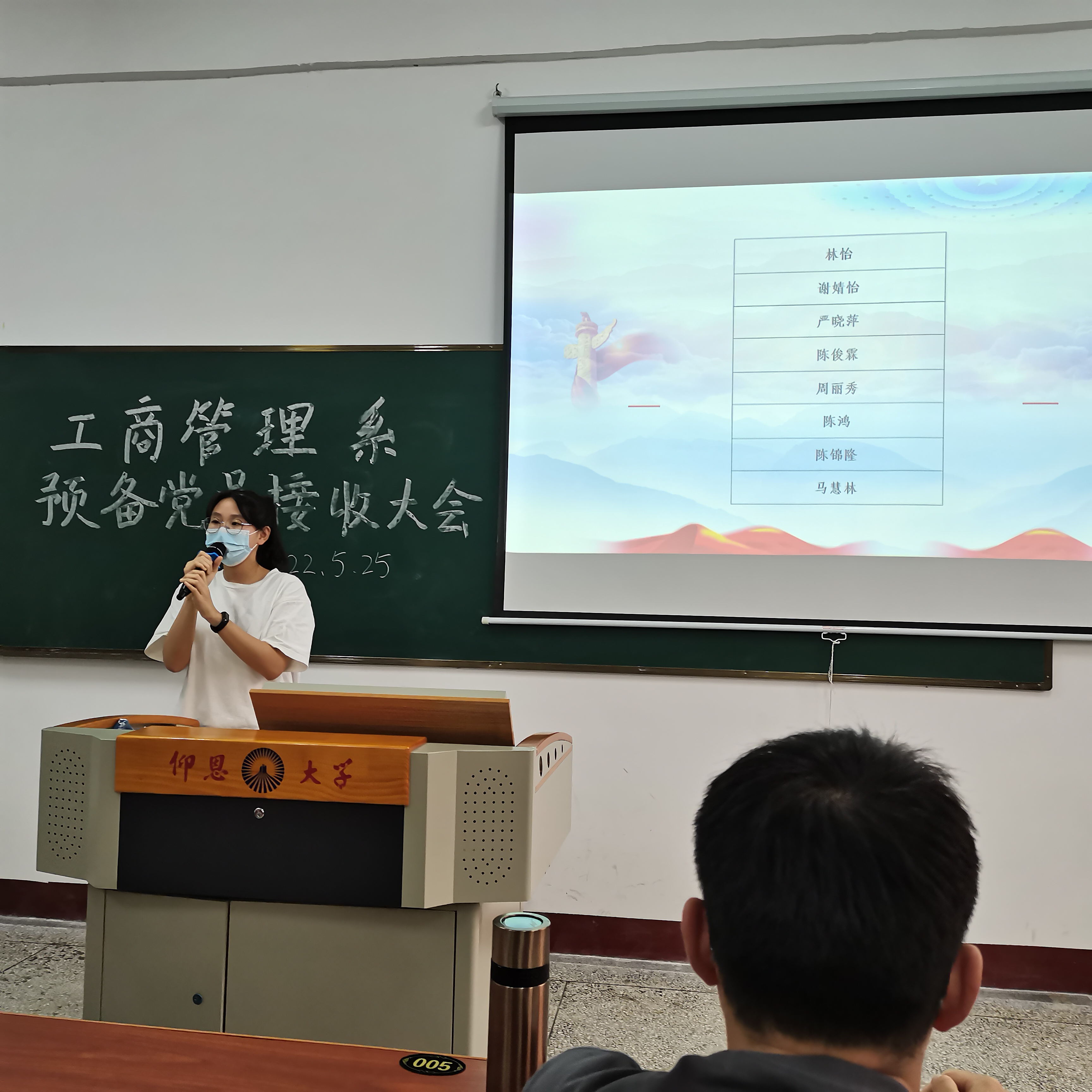 发展对象上台发言阐述 大会伊始,黄如达同志首先说明了大会目的和内容,向大家简要介绍了会议的流程。其次,林怡、陈俊霖等8发展对象逐一汇报个人情况,并向党组织汇报自身对党的认识、入党动机、个人经历以及在校表现等。随后支部书记冯瀚霄同志向大会报告其现实表现的考察情况以及综合政治审查情况,与会党员对发展对象是否符合党员条件发表了意见。大会认为,林怡、陈俊霖等8名同志基本符合党员条件,经与会正式党员投票表决,大会一致同意接收林怡、陈俊霖等8名同志成为中共预备党员。