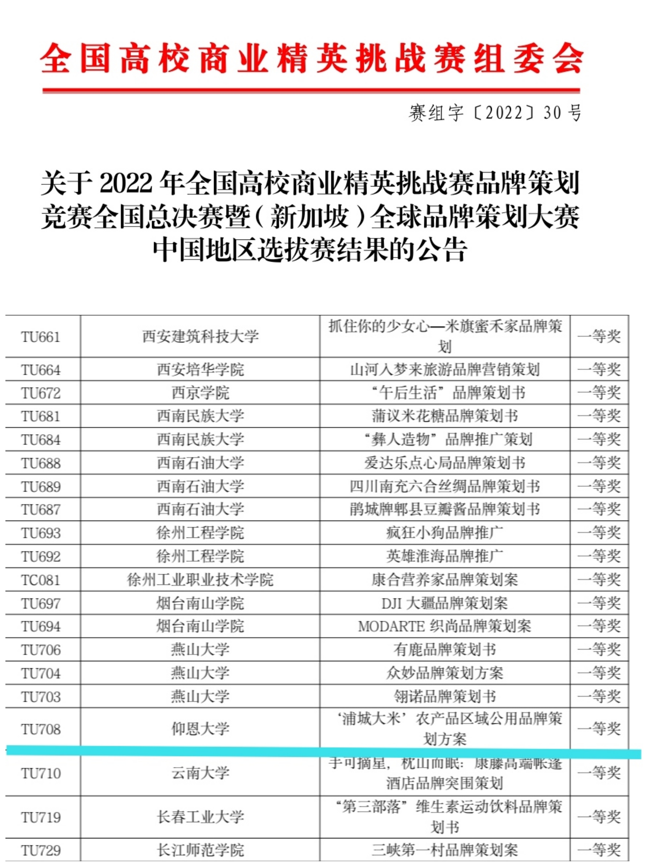 选拔结果 今年是我校首次参加该项赛事,学校教务处和3003新葡官方网站积极支持竞赛准备工作,指导老师和全体参赛选手认真备赛。另外,此次遴选参赛项目是继参加2021年由浦城县人民政府、福建省品牌建设促进会主办、浦城县市场监督管理局、华侨大学工商3003新葡官方网站承办的“浦城大米·香飘万里”品牌营销策划大赛的项目升级版,当时团队就取得了优异成绩。参赛学生通过此次比赛,提升了创新意识和策划能力,锻炼了团队协作能力。