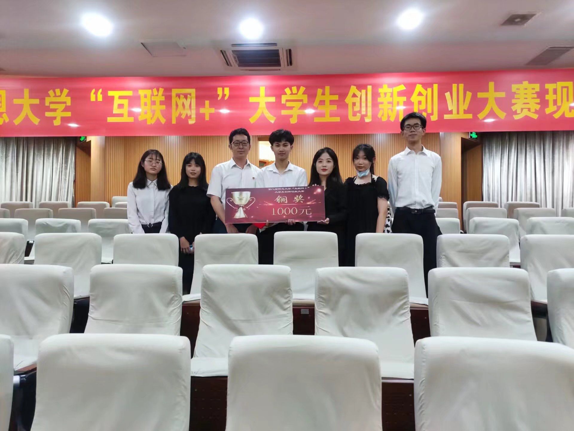 获奖队伍合影 本次赛事我校共上千名学生、百来支队伍报名参加,最终通过各个学院选拔,共有24支队伍进入决赛,其中包含18个为高教赛道项目,6个为青年红色筑梦赛道项目。新葡官网共有六支队伍参加此次比赛。