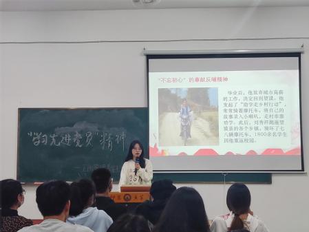 活动最后,工商管理系学生党支部书记李超楠同志号召同学们要积极向先进党员学习,向先进党员靠齐,矢志接力奋斗,为社会主义现代化建设注入新鲜活力。