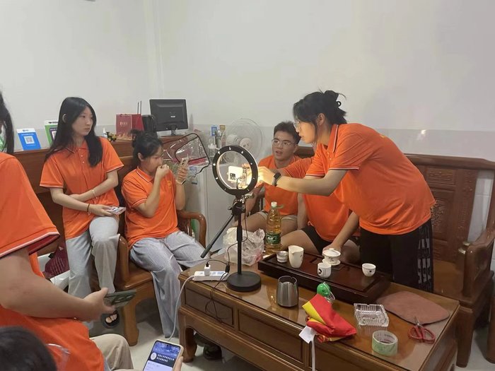 壮丽的绳武楼、漫山遍野的柚子树、古法酿制的米酒、别具风味的咸菜、口感丰厚的白香饼……2023年7月12日19:00,3003新葡官方网站大柚所为赴平和县暑期实践队于芦溪镇芦丰村民宿中首次进行了直播体验。生动的讲解宣传收获了直播间朋友的肯定与关注,取得了圆满成功。
